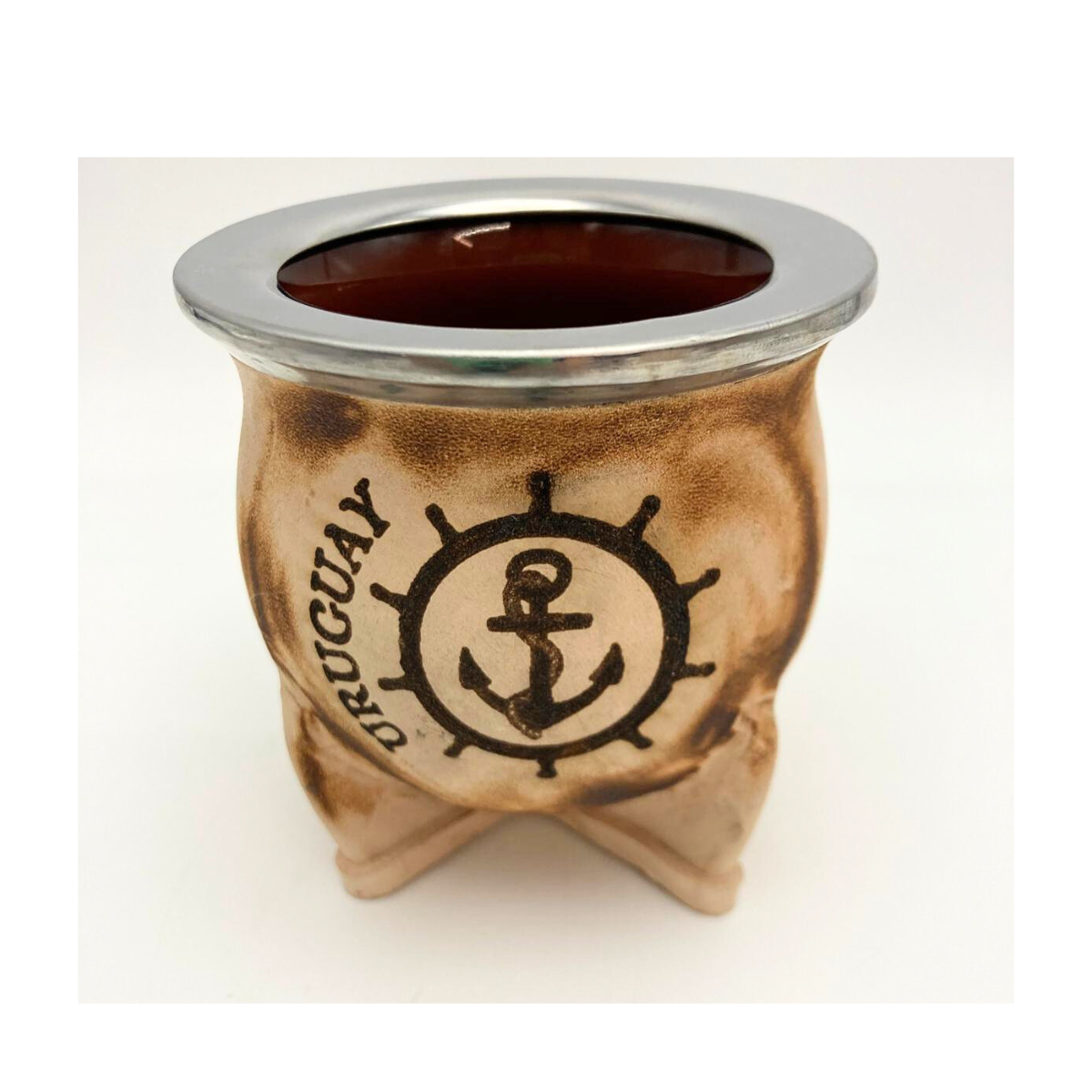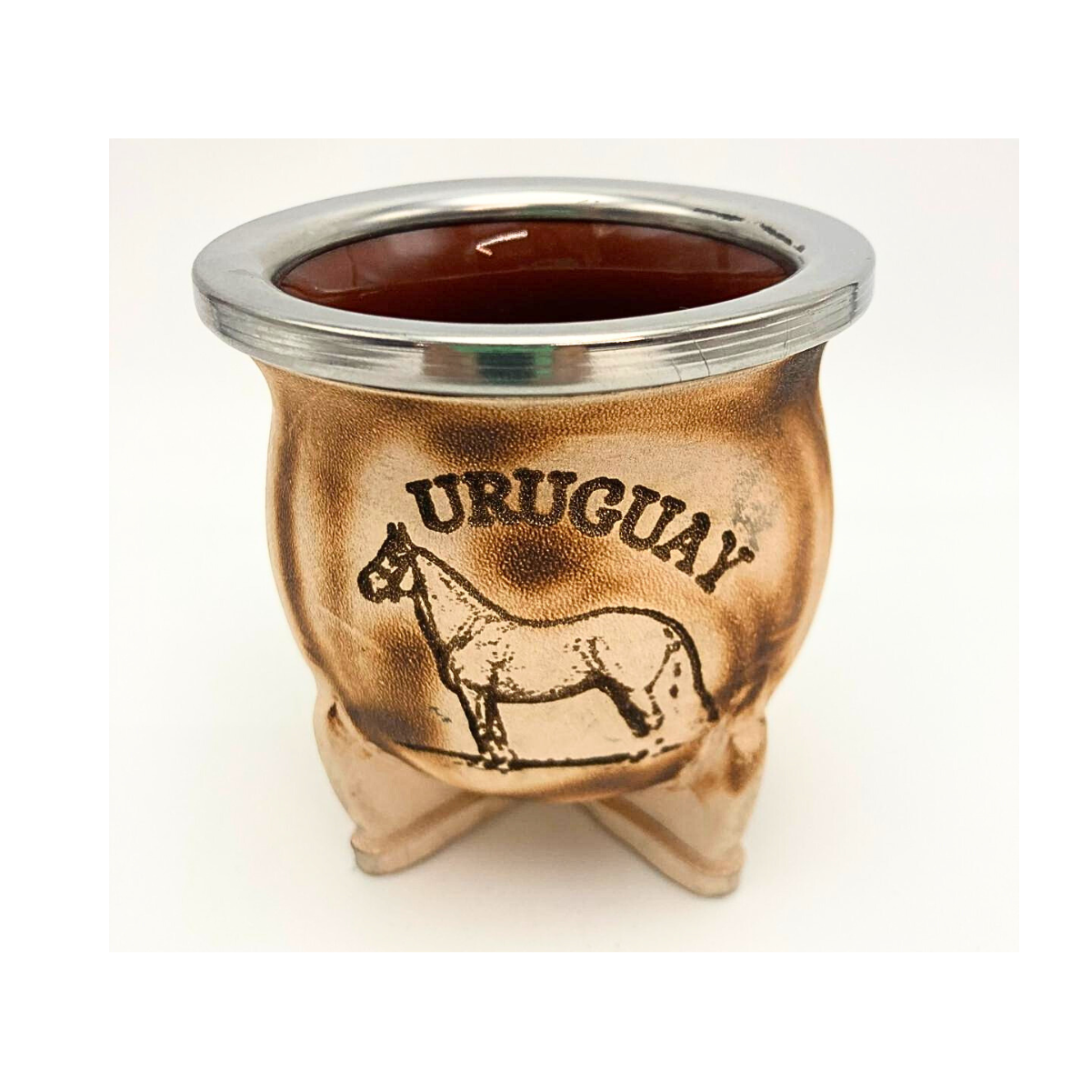 MATE DE CERÁMICA FORRADO EN CUERO VACUNO CON VIROLA.